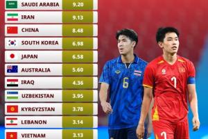 U23亚洲杯四强身价:中国U23身价为越南2.7倍;韩、日分列二三