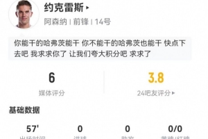 低迷!约克雷斯本场1射0正+7对抗0成功 6传球4成功 获评6分