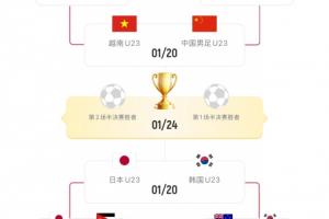 体育资讯01月18日讯 U23亚洲杯1/4决赛,U23国足点球大战淘汰乌兹别克斯坦U23,晋级半决赛将战越南U23。另一组半决赛,日本U23对阵韩国U23。
