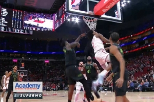 乾坤大挪移!阿门篮下接球 超强滞空拉杆躲开防守反篮打中