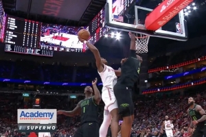 冲击十足!阿门强攻内线 对抗顶开防守上篮再中一球