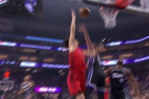 杰伦·布朗投篮下落时肘到巴洛面部 裁判回看后没有判罚
