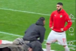 有现场球迷分享视频,比赛中摩洛哥球员塞巴里站在塞内加尔替补门将叶赫万·迪乌夫面前,两人一动不动对峙了一会儿,迪乌夫率先启动,一个沉肩虚晃过掉塞巴里,成功将毛巾交给门迪擦汗,随后迪乌夫将毛巾抱在怀里,继续与塞巴里对峙。