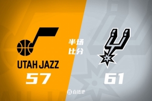 马刺半场61-57领先爵士 文班亚马21+7&5记三分 福克斯11分3断