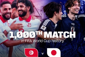 今夏世界杯,日本对决突尼斯将是赛事历史第1000场比赛