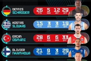 欧锦赛官推晒半决赛球员高光:施罗德26分5板12助 奥斯马尼28+6