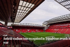 利物浦官方:安菲尔德及博物馆之旅连续4年获评全球前10%优秀景点