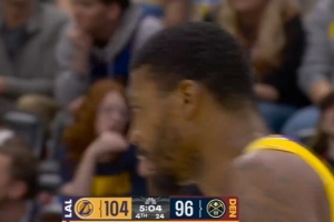 掘金五分钟没得分了!斯玛特底角三分再中 湖人一波12-0