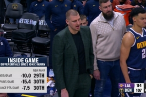 约老师缺阵后 掘金场均二次得分&内线得分联盟垫底 场均篮板倒二