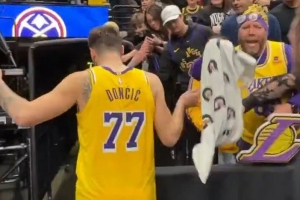 詹姆斯和东契奇赛后都为球迷送上原味儿毛巾 球迷都欣喜若狂