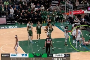 幸无大碍!切特防守时被撞到左膝倒地 缓了缓接着打