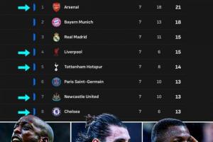 欧冠积分榜前8名中英超球队占据5席!掌握直通淘汰赛主动权