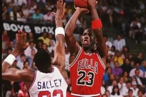 乔丹的阴影笼罩着约翰逊,直入禁区,约翰逊不知道背后的乔丹在想什么,作为活塞著名杀手——他的“微波炉”绰号就是形容他随时随地手热的本事——第一次胆怯了:他转身,把球传给了后插上的杜马斯;这正在乔丹算中:他不仅控制住了约翰逊的距离,还堵住了后排跟上的乔·杜马斯的空间,杜马斯出手,被乔丹干扰,不进,乔丹抓到篮板:
