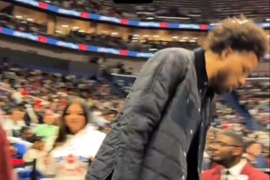 帅不过三秒坎宁安入场被绊了一下 向拍摄的球迷说:这段剪掉
