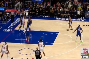风驰电掣!阿门假传真突 一步过掉防守起飞滑翔折叠暴扣