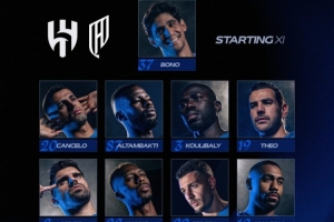 新月首发:37-布努、20-坎塞洛、87-坦巴蒂、3-库利巴利、19-特奥、8-鲁本-内维斯、28-卡努、22-米林科维奇、10-马尔科姆、29-萨利姆-多萨里、7-努涅斯