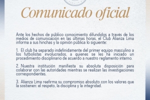 针对过去几小时通过媒体传播的公众事件,利马联盟俱乐部向广大球迷及公众作出如下声明: