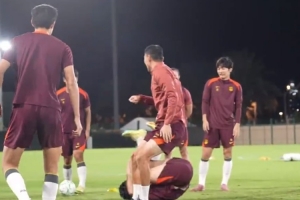 U23国足亚洲杯决赛前最后一练队内氛围轻松,时不时传来笑声
