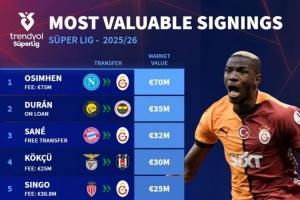 今夏土超新援德转身价榜:奥斯梅恩7000万欧居首,杜兰、萨内前三