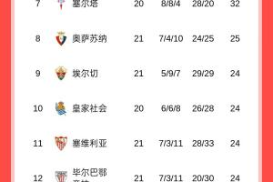 西甲积分榜:皇马先赛暂2分优势登顶 巴萨今晚出战