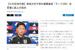 体育资讯01月25日讯 U23亚洲杯决赛,日本队4-0击败中国队夺冠。赛后报道中,数家日媒都着重提到了“大100人计划”这个口号。