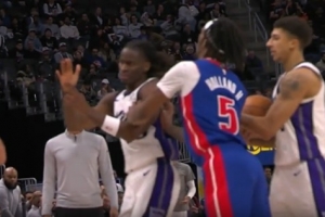 起冲突!霍兰和埃利斯向裁判抱怨 霍兰推倒后者被直接驱逐