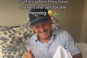 詹姆斯转发了一段标题为“当预约好早上开球时间后的高尔夫球手”在床上兴奋期待的视频,并评论道:“🤣🤣🤣🤣🤣🤣🤣🤣🤣🤣等打完这趟客场之旅,我就会是这样!”