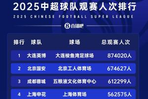 相关阅读:数据看中超|2025赛季16队上座盘点,最多和最少相差70万人次?!
