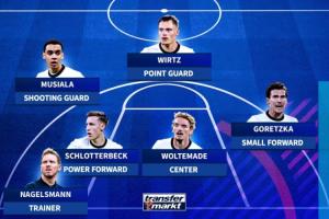 足篮联动!德转整活欧锦赛决赛首发:沃尔特马德中锋,维尔茨控卫