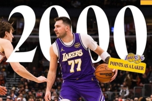 东契奇紫金生涯仅用65场砍下2000+ 湖人官方晒海报祝贺