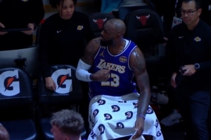 状态火热!詹姆斯暂停期间指着自己胸脯跟队友说:把球给我