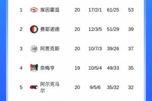 身后的费耶诺德和阿贾克斯在本轮都取得了胜利,但费耶诺德近5轮仅1胜,阿贾克斯赛季初表现不佳,仍大幅落后于埃因霍温。