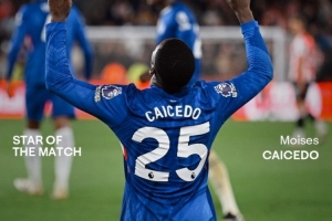 实至名归!凯塞多被评为切尔西2-2布伦特福德队内最佳