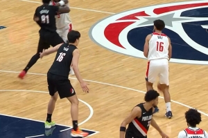 继续强硬下去!吉尔贴身防守很凶 杨瀚森不惧对抗造成犯规!