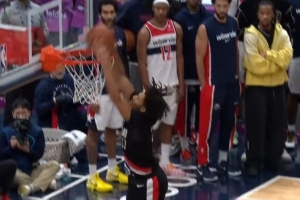 白热化!谢顿·夏普冲击篮筐暴扣 开拓者追到1分分差