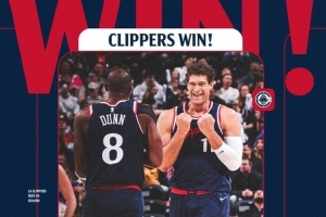 赛后快船发布赢球海报,洛佩斯和邓恩登上封面。