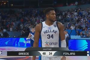 欧锦赛季军赛:希腊半场领先芬兰14分!字母哥16+8 马尔卡宁6分!