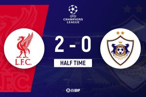 半场-利物浦暂2-0卡拉巴赫 麦卡破门维尔茨建功弗林蓬开场伤退