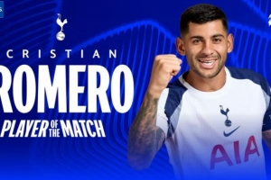 送出助攻,官方:罗梅罗当选热刺2-0法兰克福全场最佳球员
