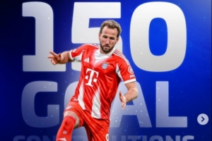 用时127场比赛,凯恩达成拜仁生涯直接参与150球里程碑
