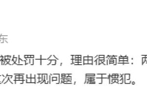 媒体人:申花津门虎被罚10分,因上次已经被罚6分这次属于惯犯