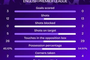富勒姆半场0-0阿森纳数据:射门6-7,射正0-1,控球率30%-70%