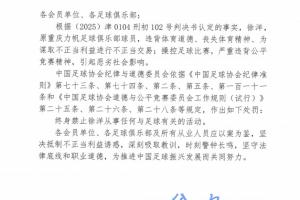 今日处罚决定中写道:原重庆力帆足球俱乐部球员徐洋,违背体育道德、丧失体育精神、为谋取不正当利益进行不正当交易;操控足球比赛,严重违背公平竟赛精神,引起恶劣社会影响。处以终身禁足