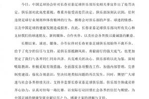 亚泰官方回应历史问题处罚