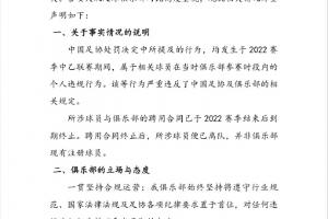 俱乐部将进一步加强内部管理体系建设,完善球员及所有从业人员长效监督机制。