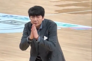 太搞笑了!邱彪对着本方替补席比出别说话 拜托拜托的手势