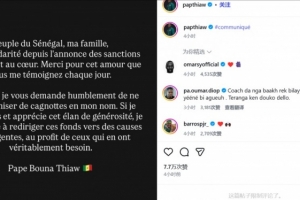 帕佩·蒂亚写道:“塞内加尔的人民、我的家人们,自处罚公布以来你们表现出的团结让我深受感动。感谢你们每天给予我的爱。然而,我谦卑地请求大家不要以我的名义组织众筹,虽然我理解并感激这份慷慨,但我邀请各位将这些资金投向更紧急的事业,去帮助那些真正有需要的人。”