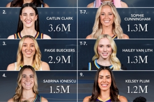 WNBA球星社媒粉丝数赛季排行:里斯510万依旧第一 本赛季涨粉20万