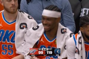 输麻了但心情还不错?亚历山大在替补席有说有笑的