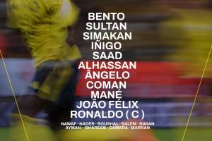 胜利首发:24-本托、2-哈纳姆、3-西马坎、26-伊尼戈-马丁内斯、96-纳赛尔、19-哈桑、20-安吉洛、21-科曼、10-马内、79-菲利克斯、7-C罗
